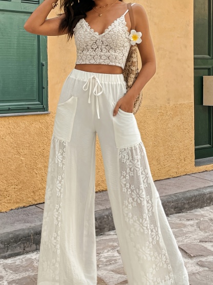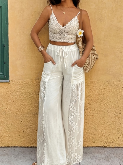 Women's Elegant Loose Fit Lace Casual Vacation Patchwork Wide-Leg Pants