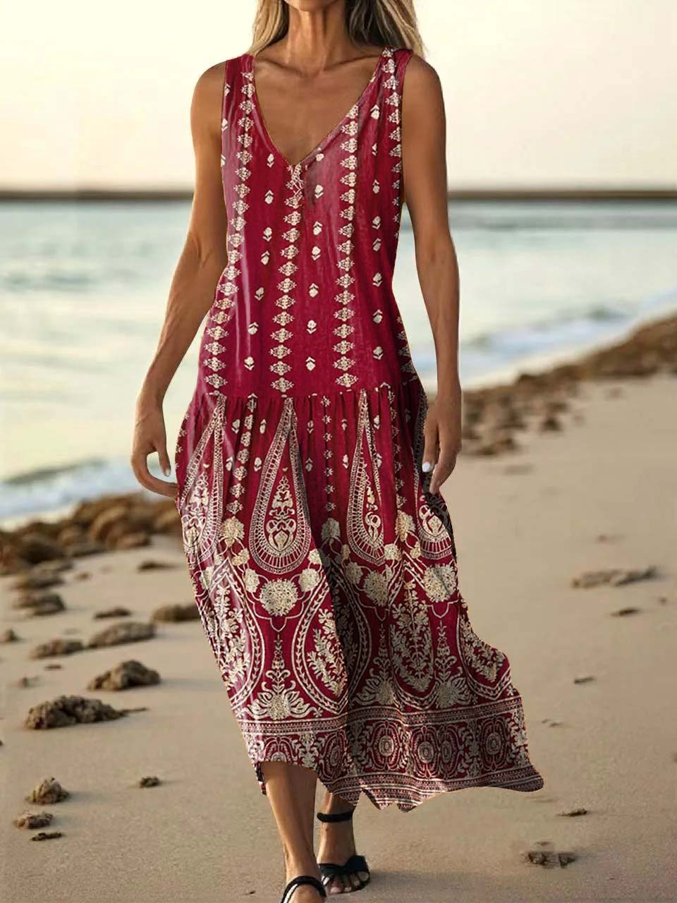 Women's Ethnic Tattoo Pattern Art Print Pocket Cotton Dresses