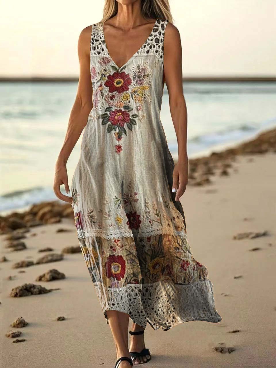 Women's Floral Art Print Pocket Cotton Dresses