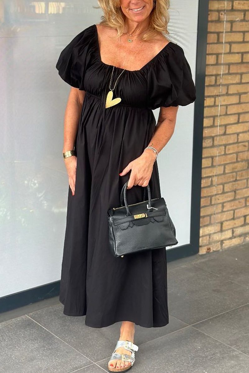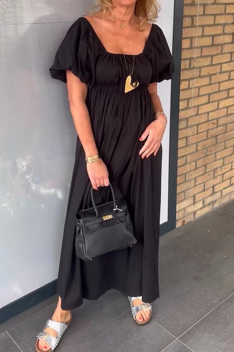 Women's Gathered Square Neck A-Hem Dress