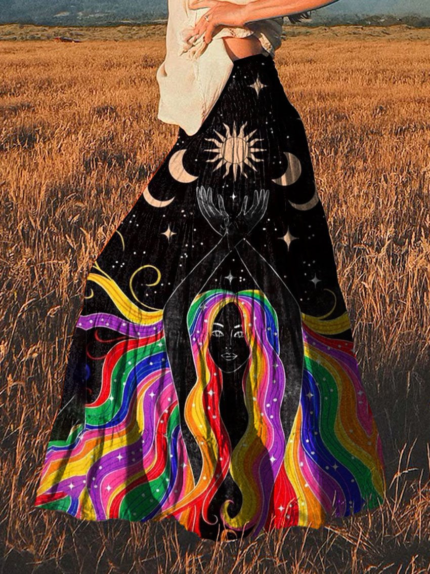 Women's Peace Rainbow Girl Print Cotton Pocket Skirt