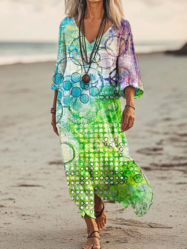 Women's Tie-dye Irregular Circle Pattern Art Print Pocket Cotton Dress