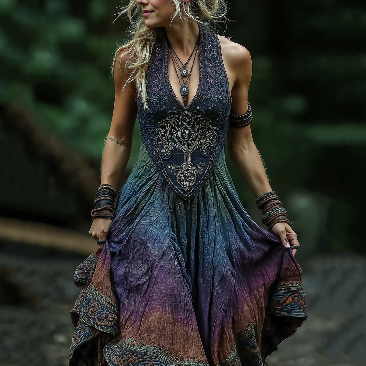 Women's Viking Celtic Knot Tree Of Life Gradient Linen Maxi Dress