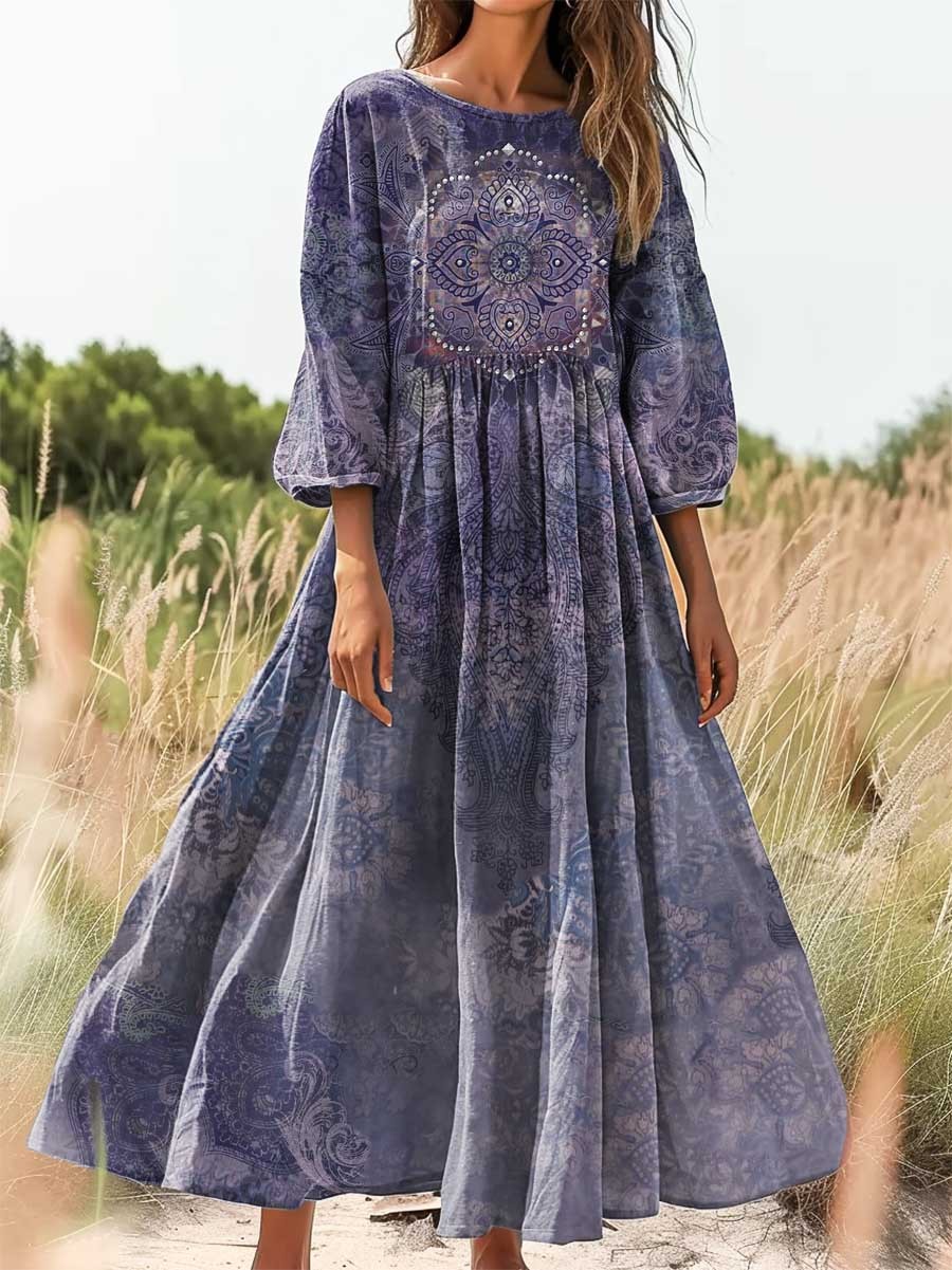 Women's Vintage Tattoo Pattern Art Print Cotton Crew Neck Dress