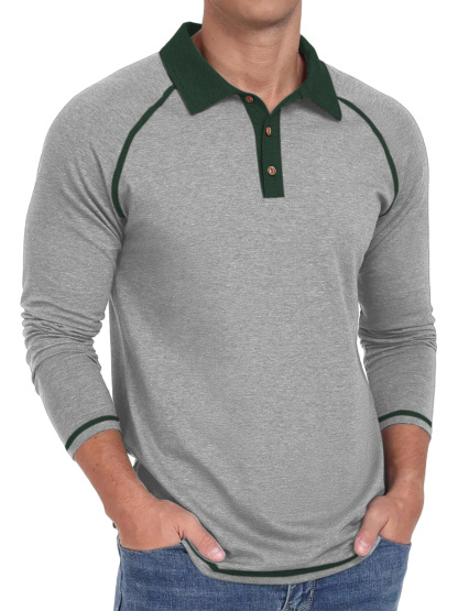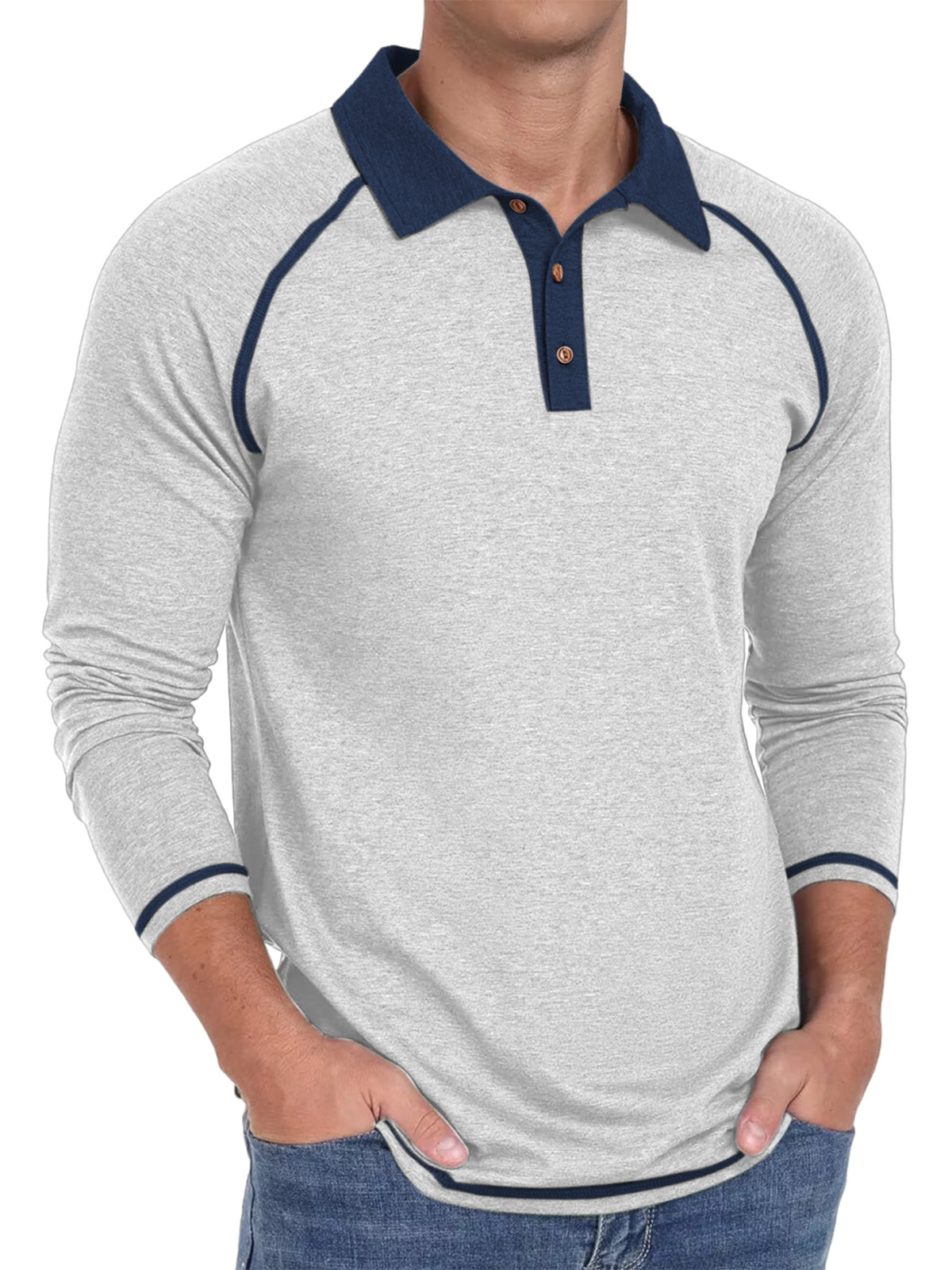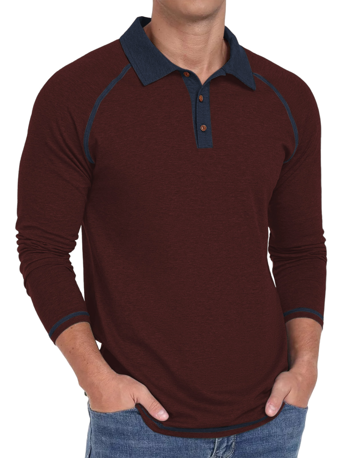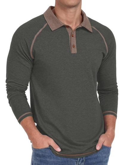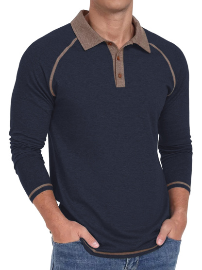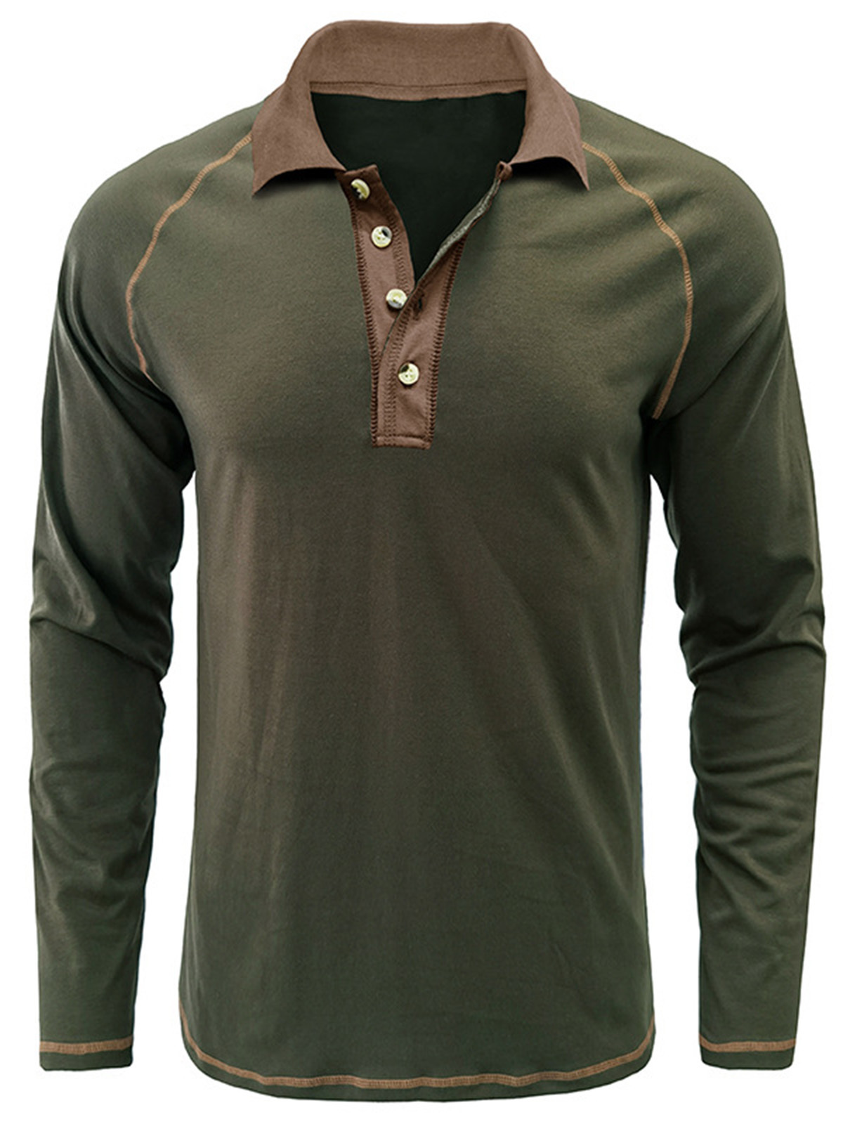 Men's Casual Solid Color Contrast Lapel Long Sleeve T-shirt