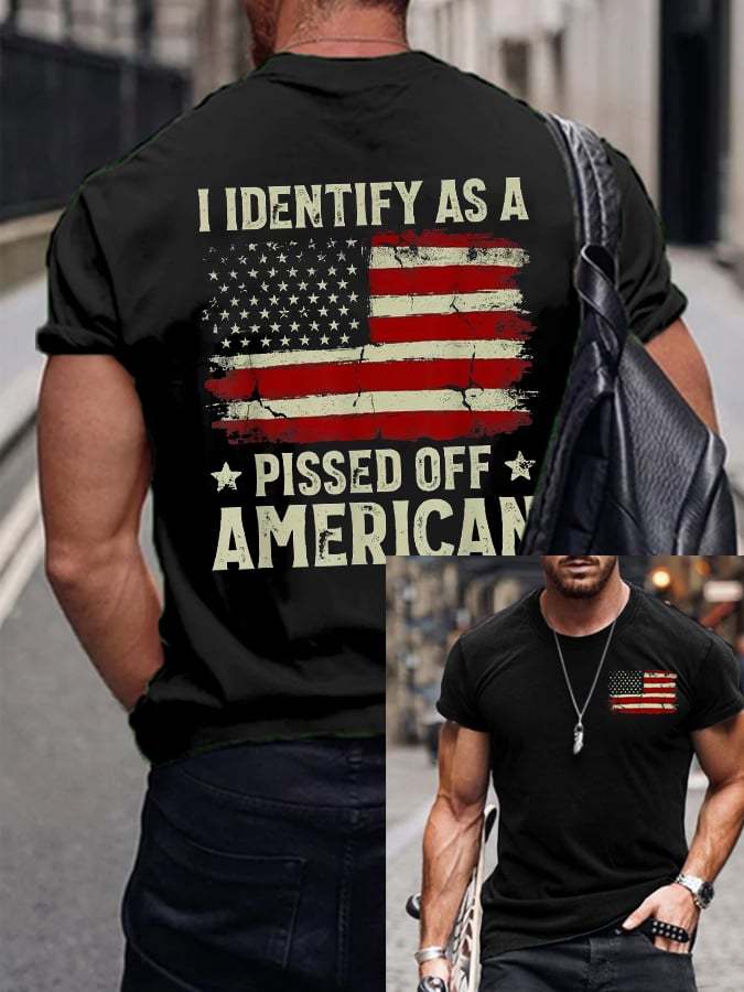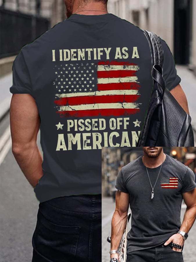 Men's I Identify As A American Flag Print Short Sleeve T-Shirt