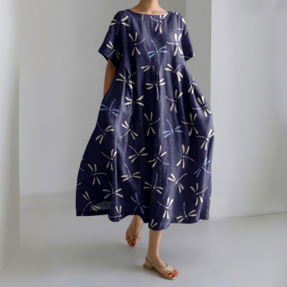 Women's Dragonfly Art Cozy Linen Maxi Dress