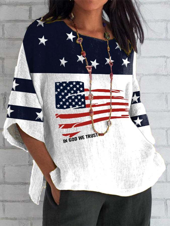 Women's In God We Trust Print Round Neck Short Sleeve T-Shirt