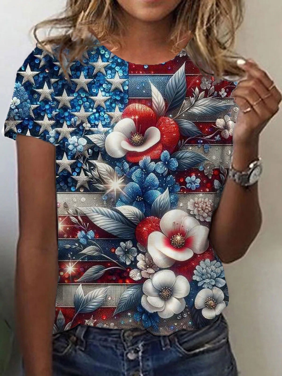 Women's Independence Day Floral Print T-Shirt