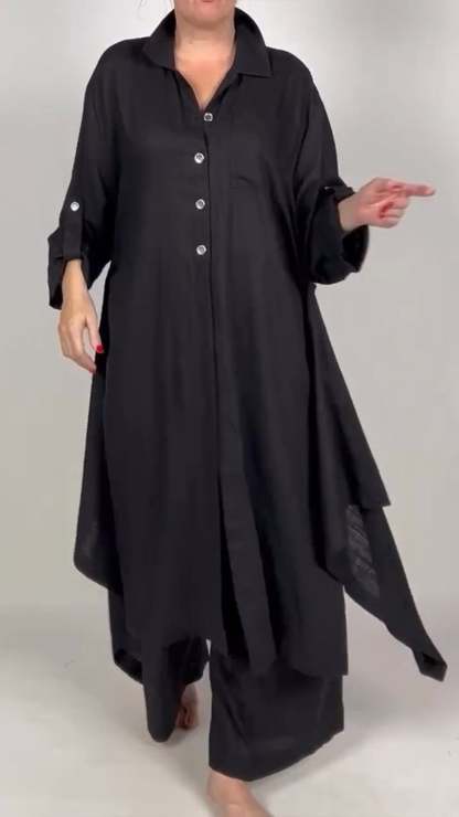 Women's V-neck Long-sleeved Irregular Casual Suit
