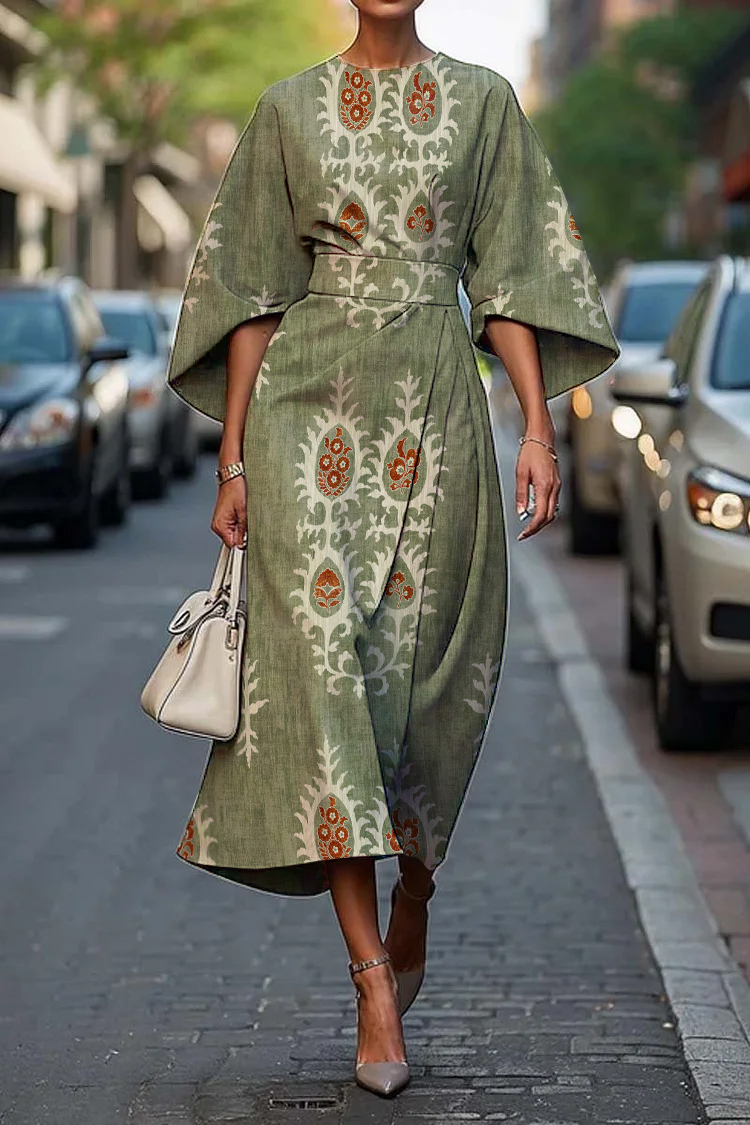 Women's Vintage Elegant Ethnic Floral Print Midi Dress