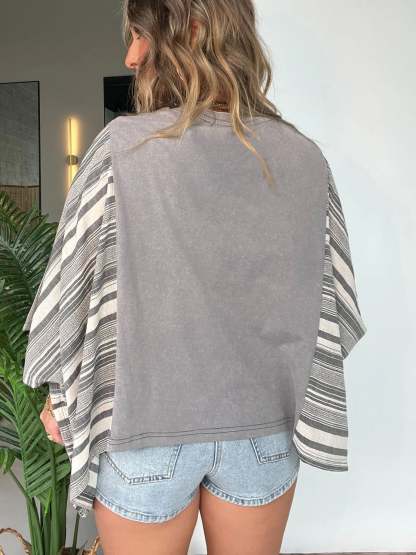Washed Vintage Graphic Tee with Batwing Sleeve