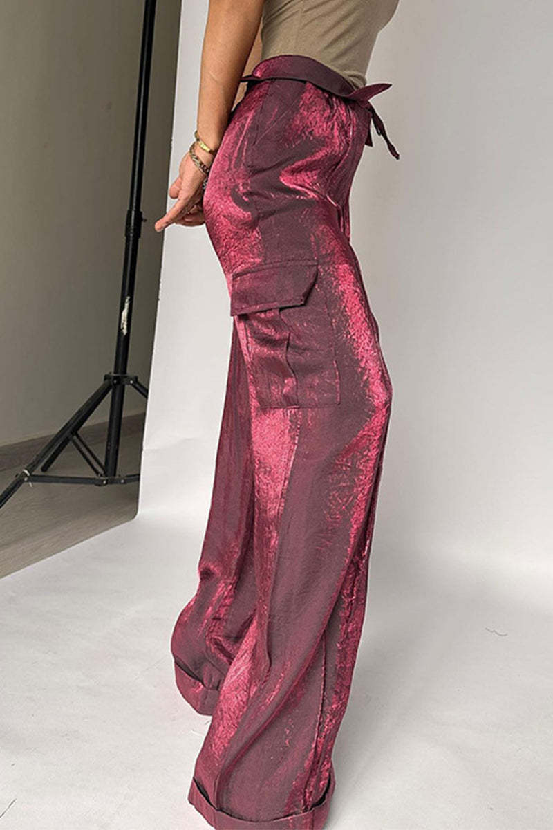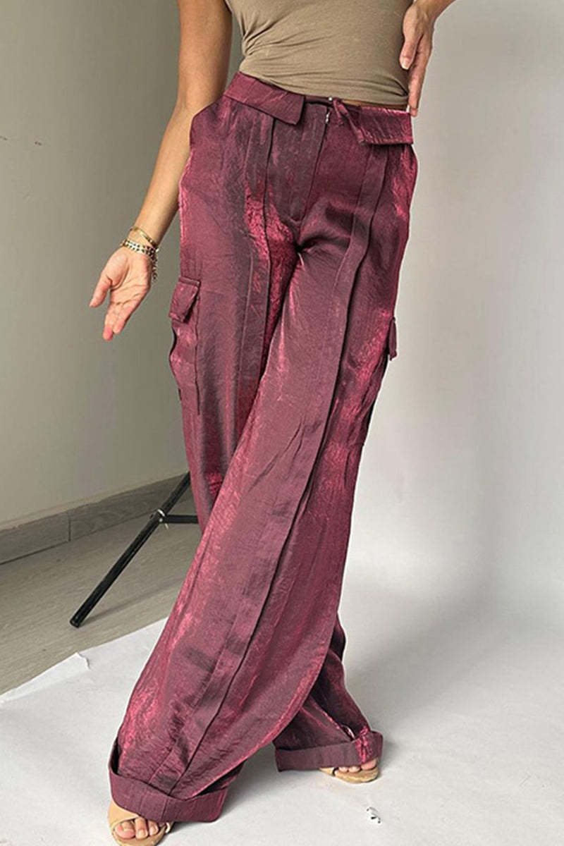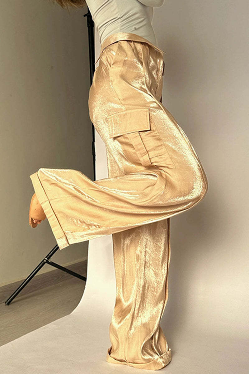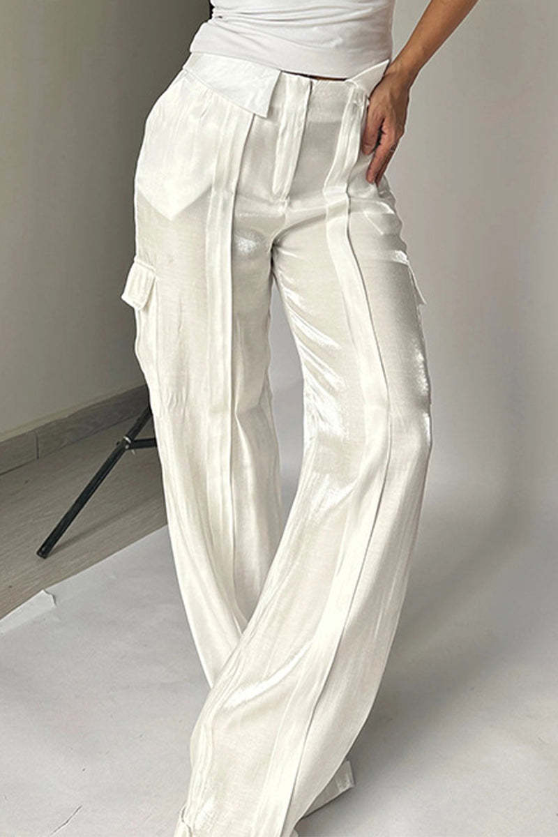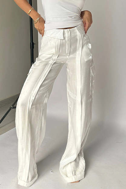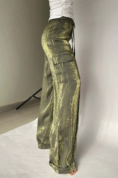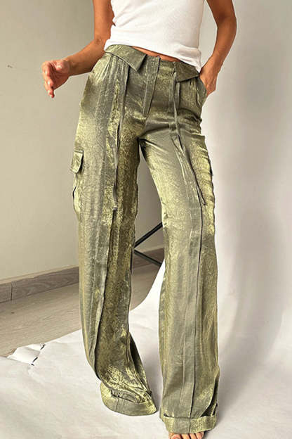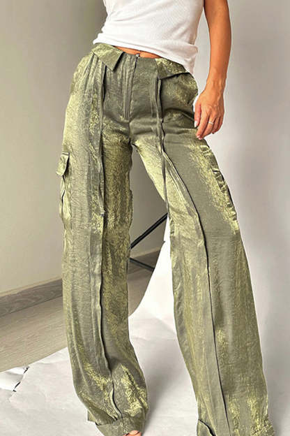 Casual Gradual Change Pocket Loose Mid Waist Straight Bottoms(5 Colors)