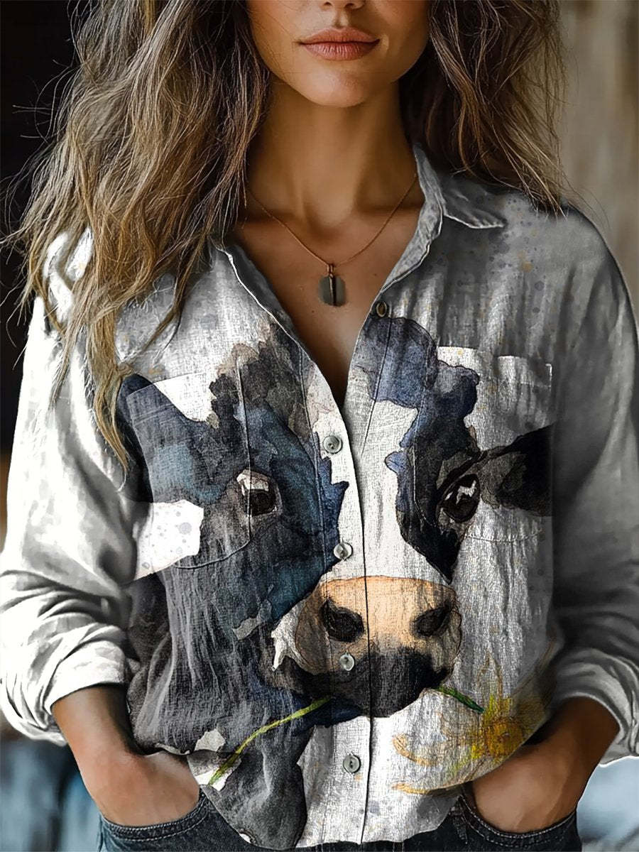 Cow Print Casual Long Sleeve Comfortable Cotton Shirt