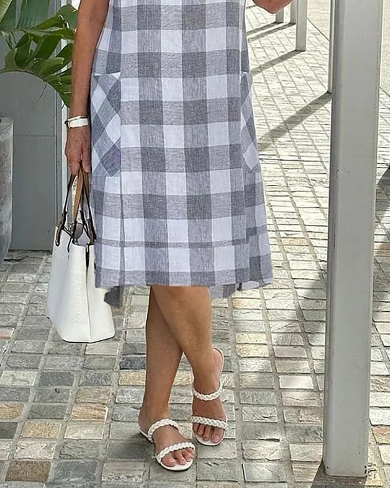 Long Dress Short Sleeve Loose Linen Floaty Dress Gray and White Dress