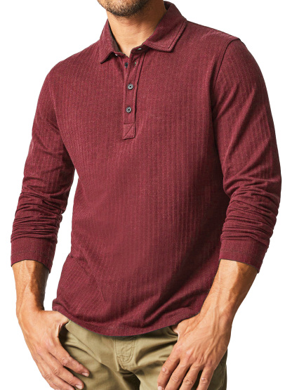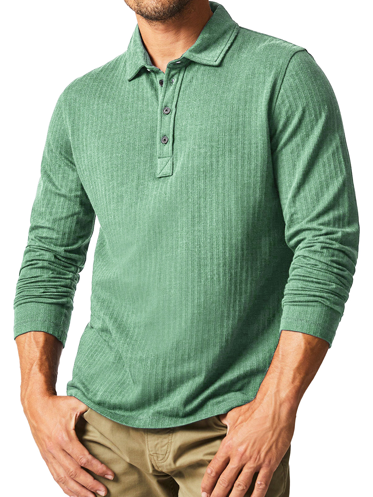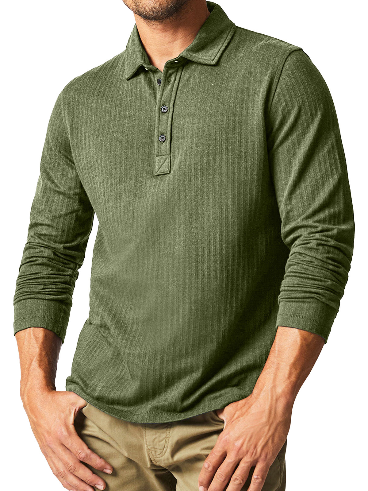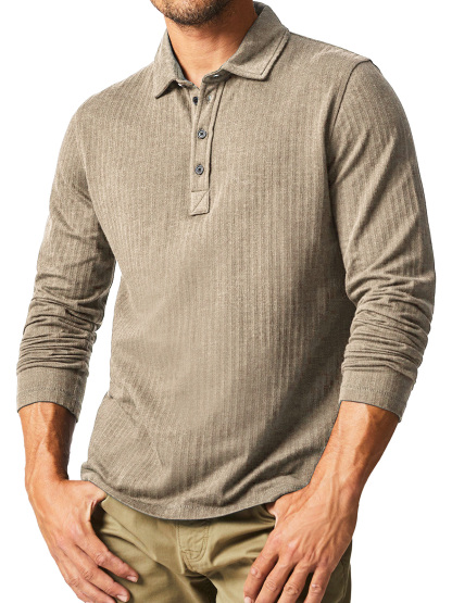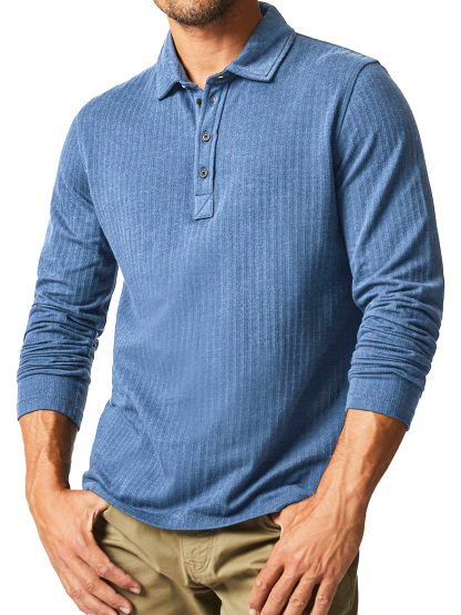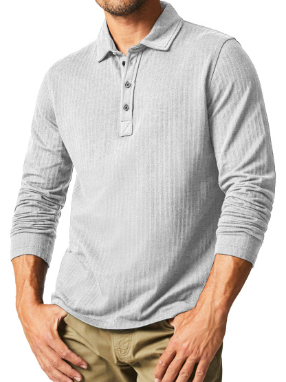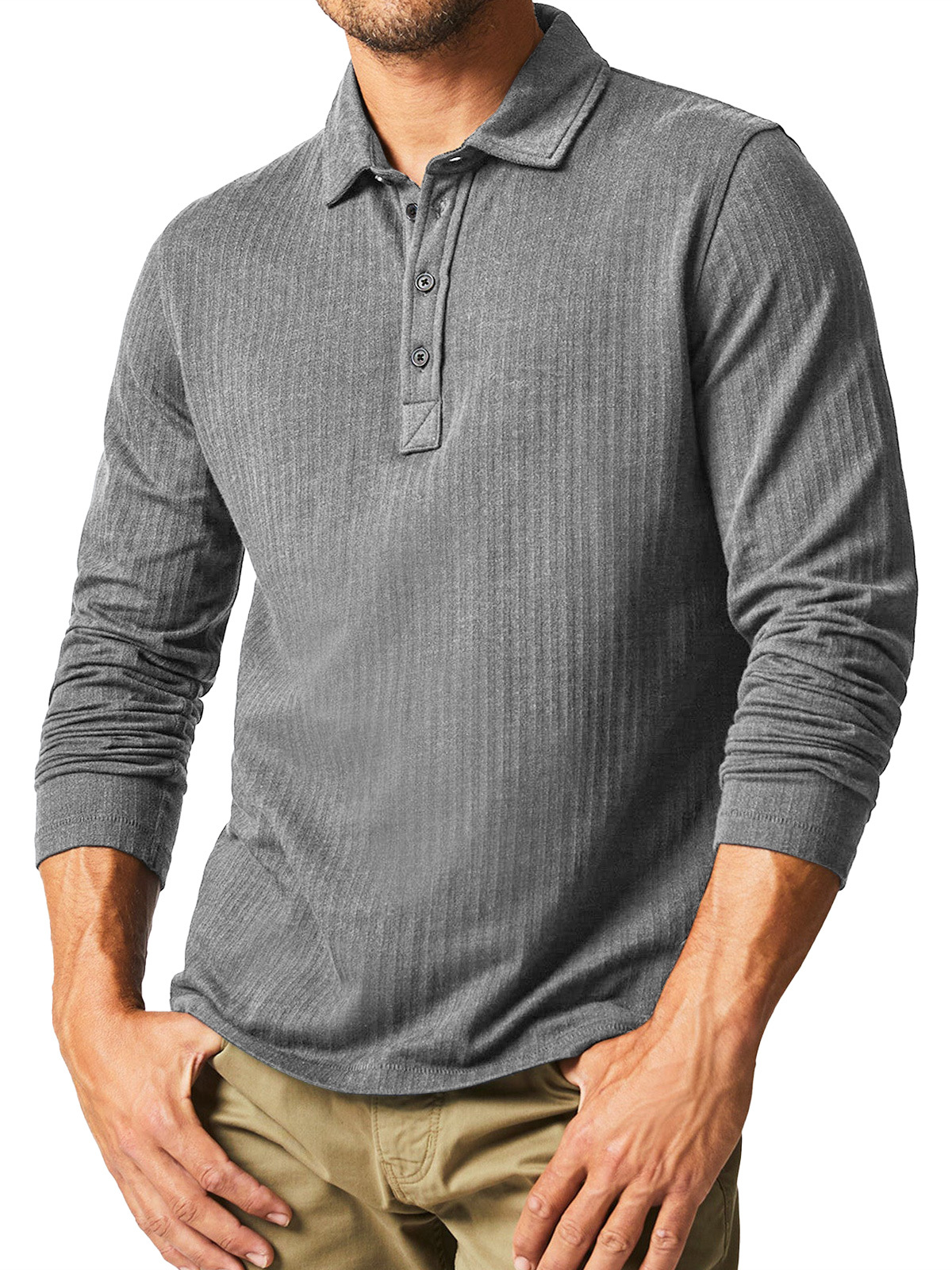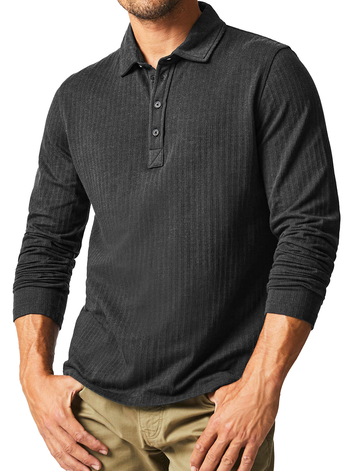 Men's Casual Lapel Button Texture Long Sleeve POLO Shirt