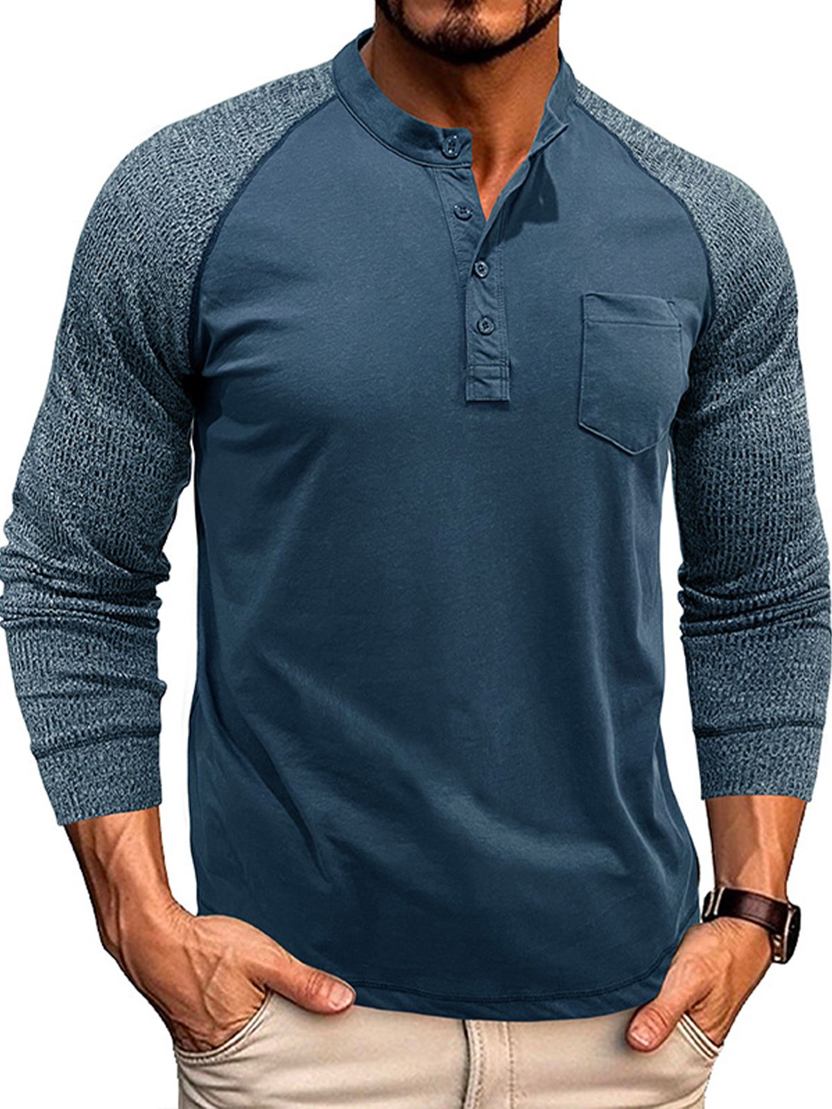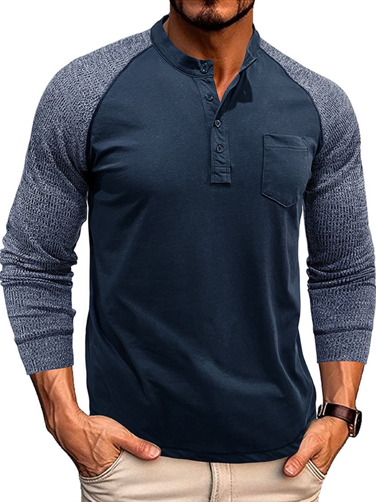 - Neckline:Henley Collar