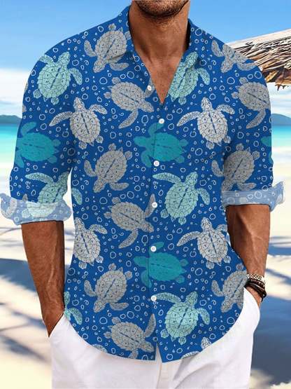Men's Hawaii Turtles Print Fashion Vacation And Casual Shirt (With Pockets)