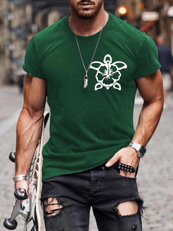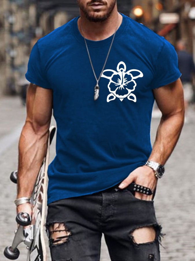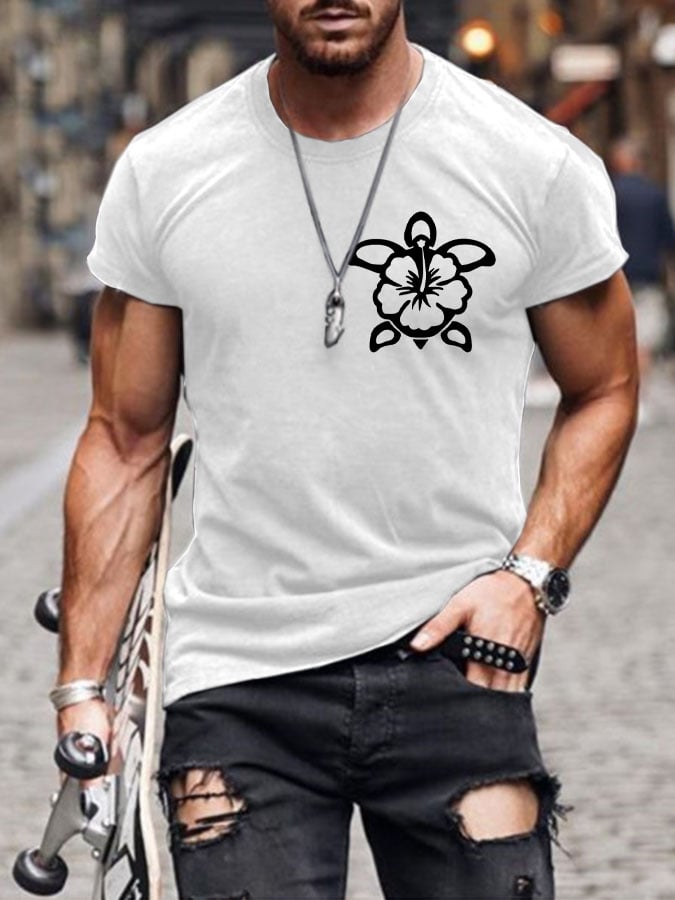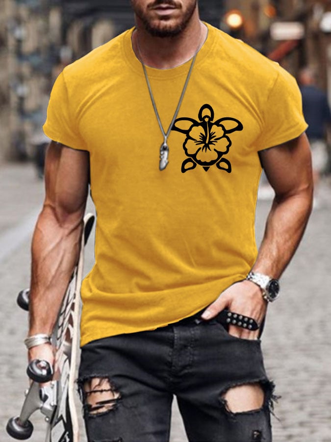 Men's Hawaiian Turtle Hibiscus Flower Print T-shirt
