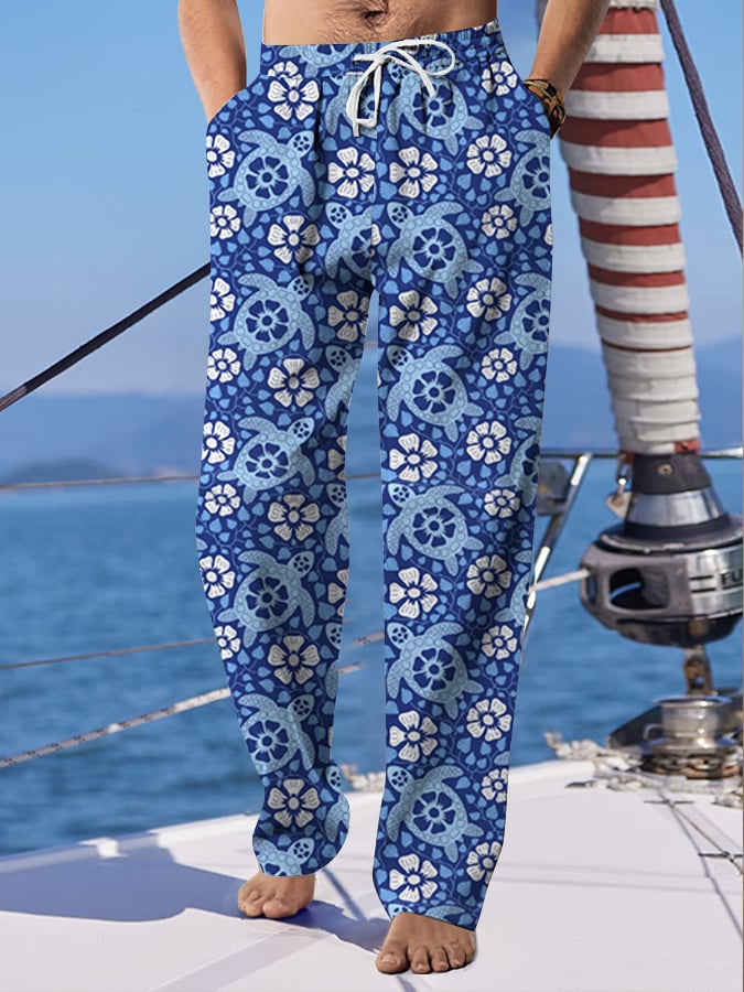 Men's Hawaiian Turtle Print Fashionable Resort Lounge Pants