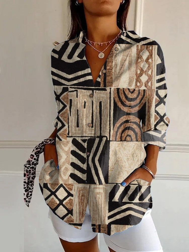Vintage Mysterious Abstract Art PrintCasual Long-sleeved Shirt