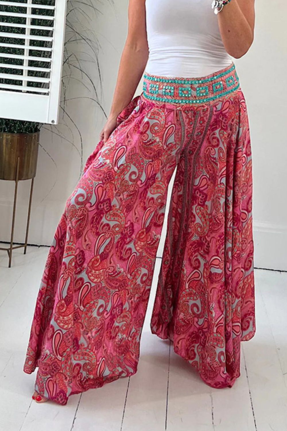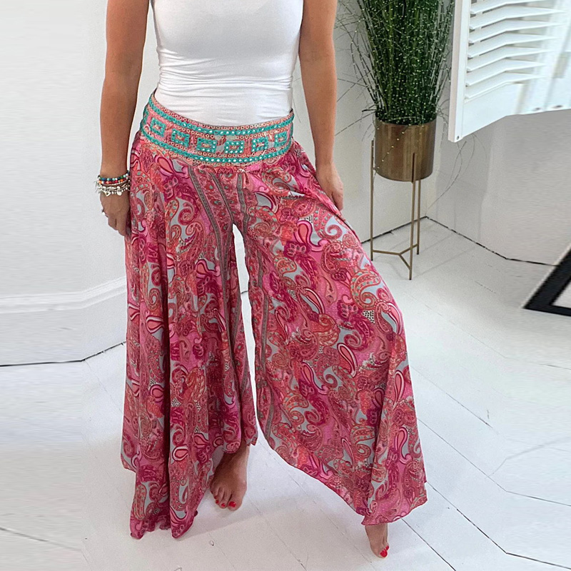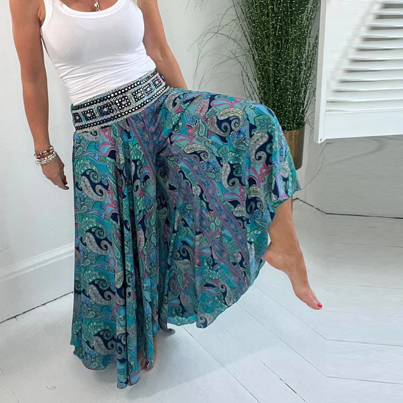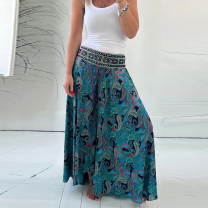 Women's Bohemian Print Retro High Waist Loose Ethnic Wide Leg Casual Pants