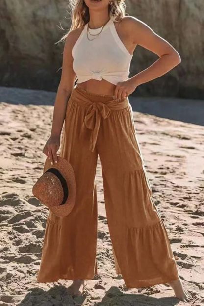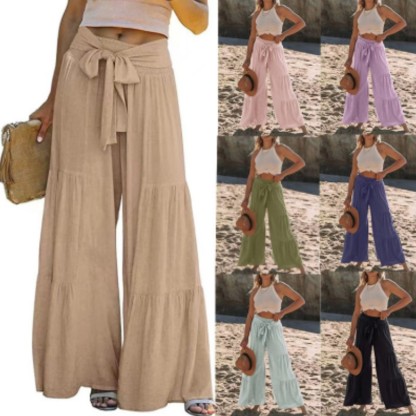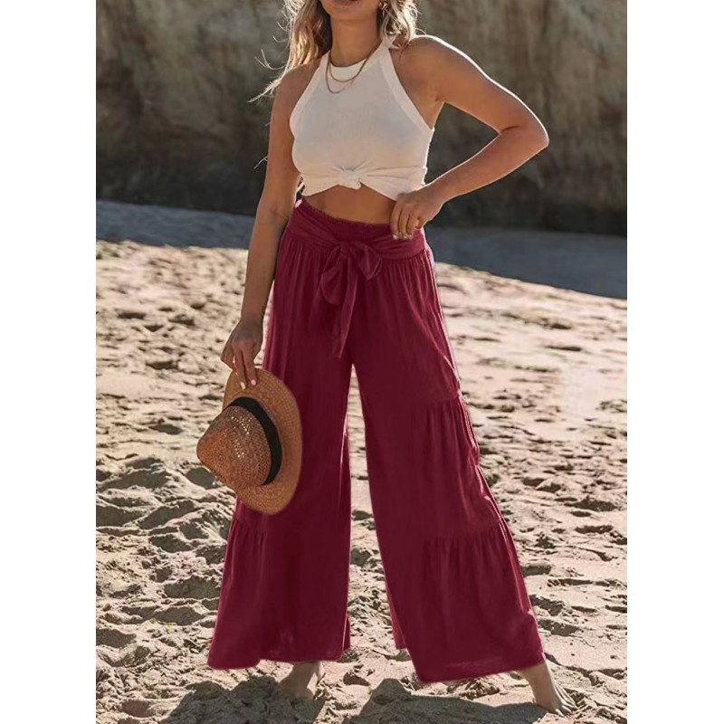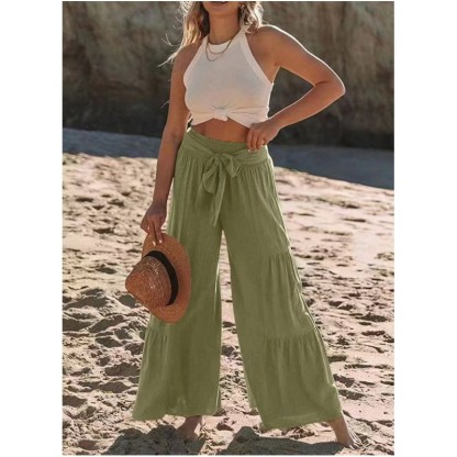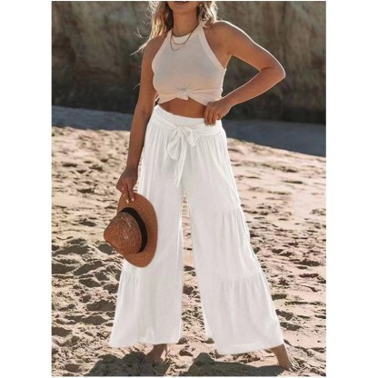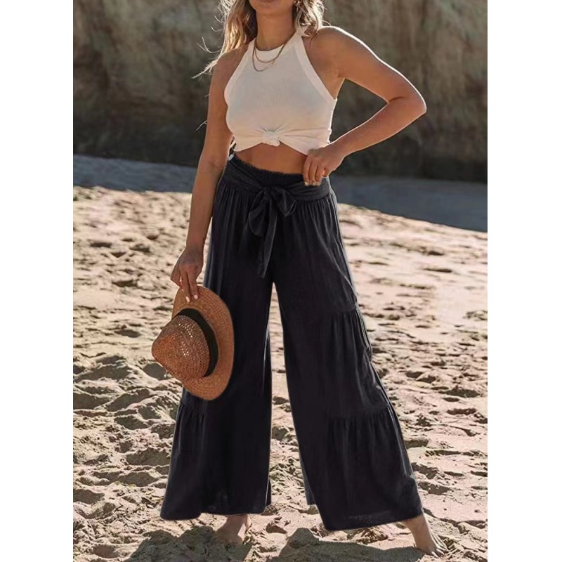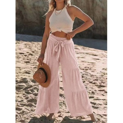 Women's Bottoms Casual Solid Color Fashion Lace High Waist Loose Wide Leg Pants