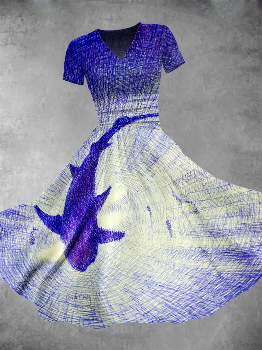 Women's Vintage Abstract Fish Art Print Maxi Dress
