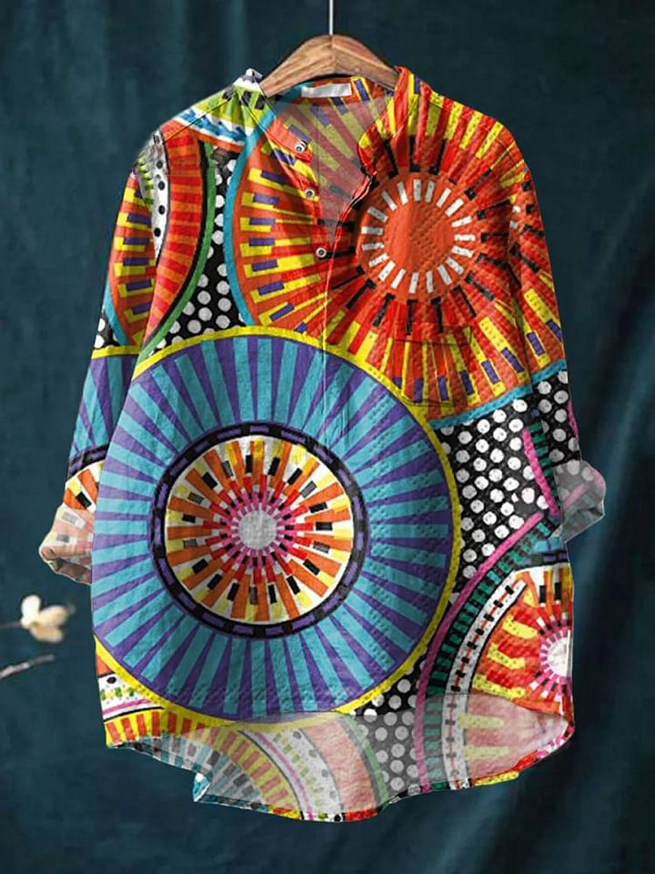 Women's Vintage Art Print Casual Long Sleeve Comfortable Cotton Shirt