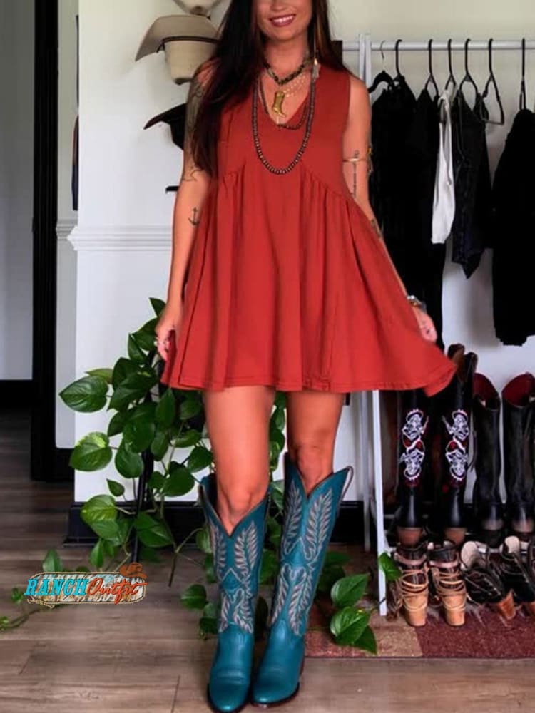 Women's Vintage Print Pocket Cotton Dress
