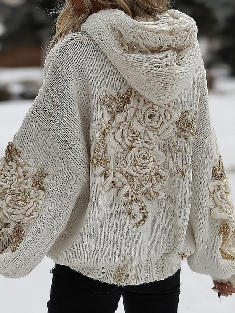 Women's White Rose Classic Cable Hooded Sweater